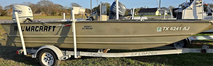 '07 Alumacraft 20 ft. powered by '21 Suzuki 115 on galvanized trailer.